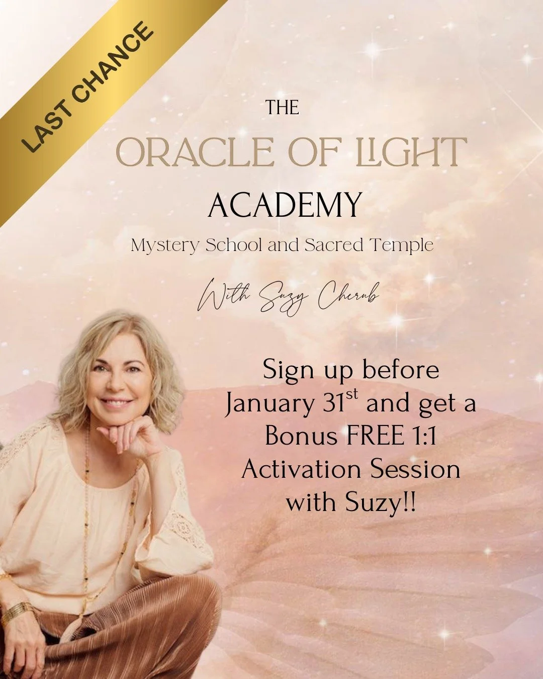 Enrol before 20 February and receive a FREE 45-minute 1:1 session with Suzy Cherub to accelerate your awakening before the Academy begins.
