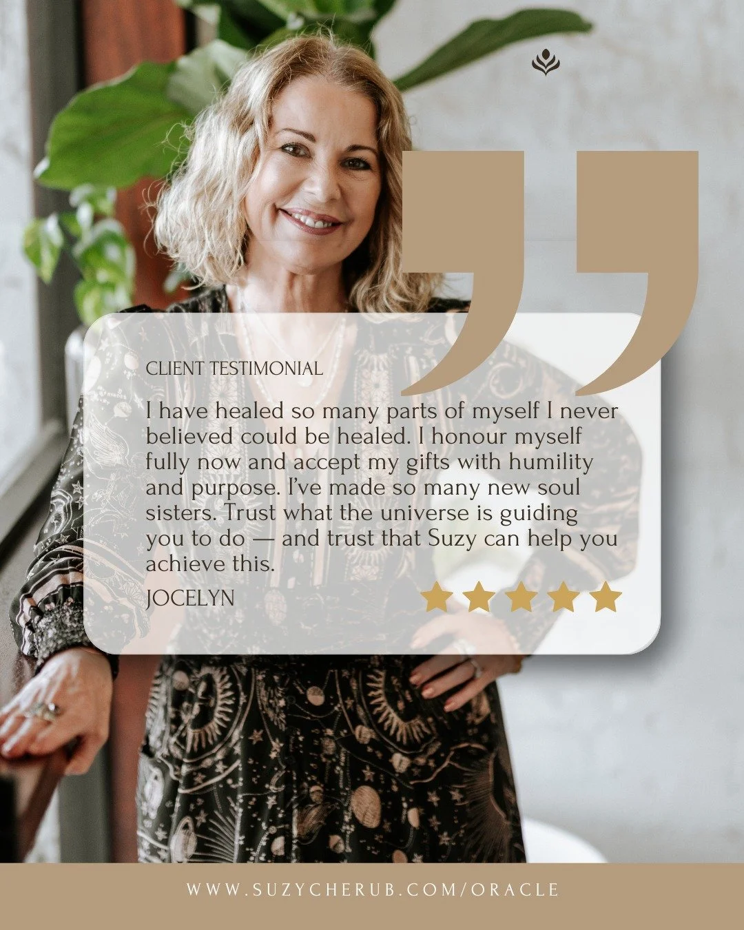 “I attended Suzy’s Moon Temple retreat in 2024 and it was the most soul warming and beautiful experience - everything Suzy touches has magic attached to it and I can not recommend her more highly - whether it be one on one coaching, workshops or retreats. Suzy always leaves her soul imprinted on those she is around. I have always been left feeling like I have come home to me when I have spent time with Suzy.”